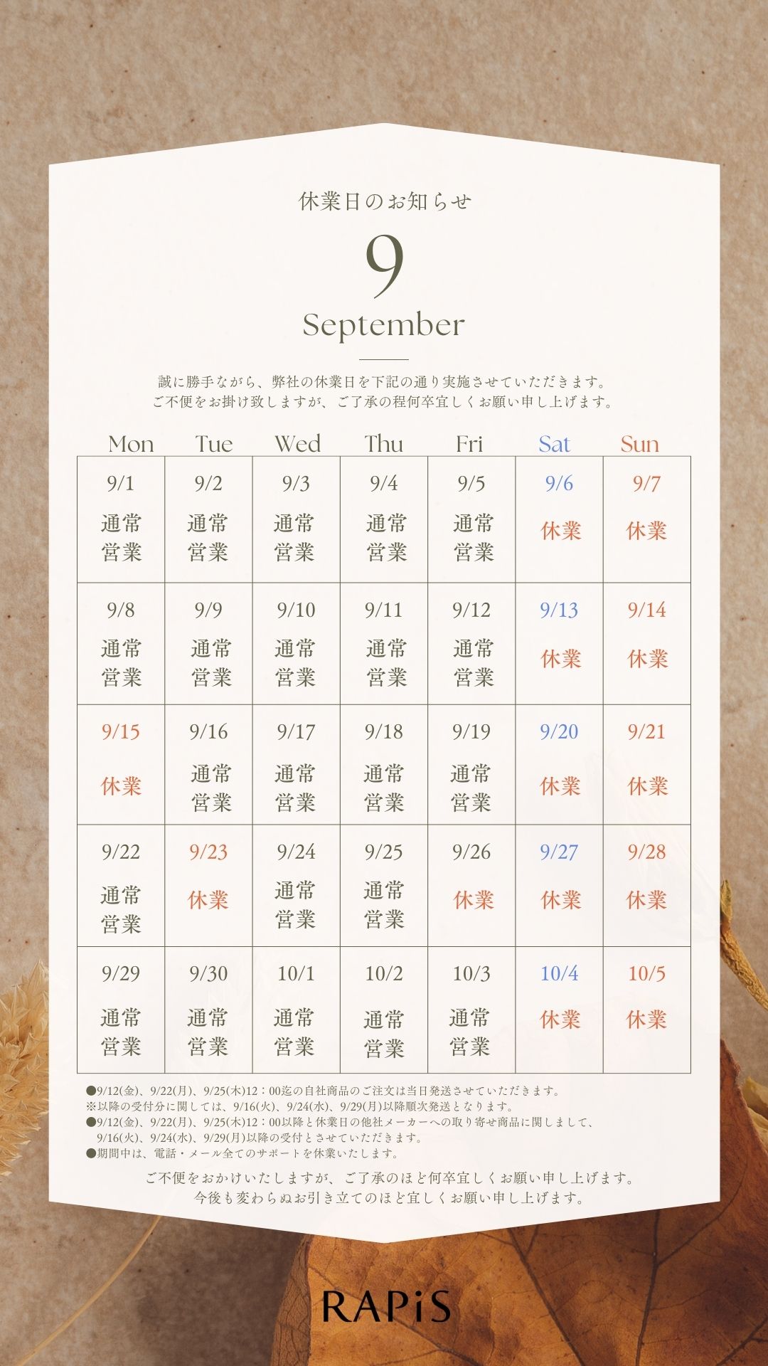 9月 休業案内